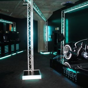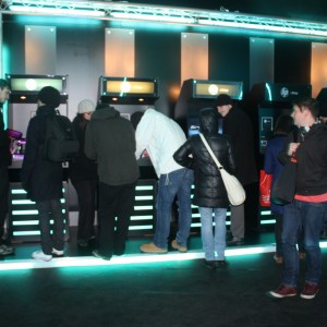 Flynn’s contained retro arcade machines and the Tron Legacy area featured a replica Tron light cycle, movie trailer, Xbox and HP ePrinters. A competition and instant photos printed on site engaged the audience.